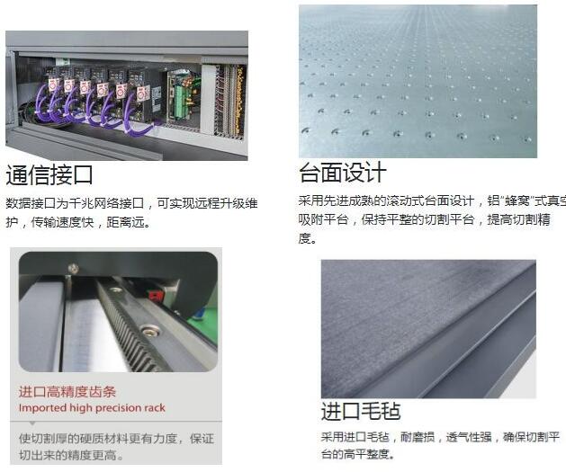 2.采用進(jìn)口毛氈,耐磨損,透氣性強(qiáng),確保切割平臺(tái)的高平整度;